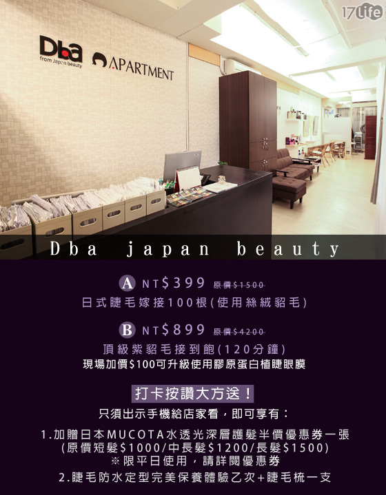 聚餐時刻又到了, 17Life-吃喝玩樂團購3折起,又讓愛聚餐的我們買不停吃不停,價格超殺,如果點進去已經售完別捶心肝喔!限時限量的團購券先搶先贏喔! 大同區來自日本的嫁接睫毛沙龍,部落客推薦!頂級絲絨貂毛與紫貂毛,效果自然,捲翹度立即提升,輕鬆變身亮眼甜心