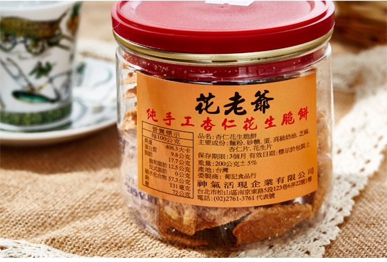 主要成份:麵粉、砂糖、蛋、高級奶油、芝麻、杏仁片、花生片
