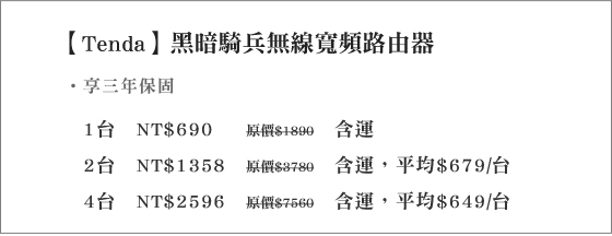 【Tenda】黑暗騎兵無線寬頻路由器 F328