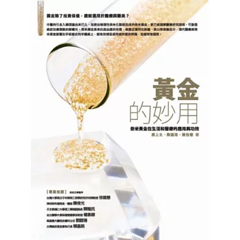 食用黃金對人體到底有什麼功效?《本草綱目》記載黃金有安定心神的效果,中古時期歐洲的煉金士把黃金粉加入飲料,以減輕患者的四肢疼痛。發展至今,科技的進步已能將傳統金箔的製作方式,提升至符合食用安全的奈米黃金。研究顯示,以奈米黃金熟成的酒,喝了之後會降低酒精對身體造成的負擔。為何黃金可以促進酒類熟成?市售的金箔都是可食用的嗎?傳統金箔與奈米黃金差異性又在哪裡?除了食用,書中並會詳細解說,奈米黃金如何被應用在醫美與醫療器材上,奈米黃金的應用要注意安全規格,才能保障使用的安全,哪些安全試驗內容可以協助我們選擇安全的奈米黃金呢?