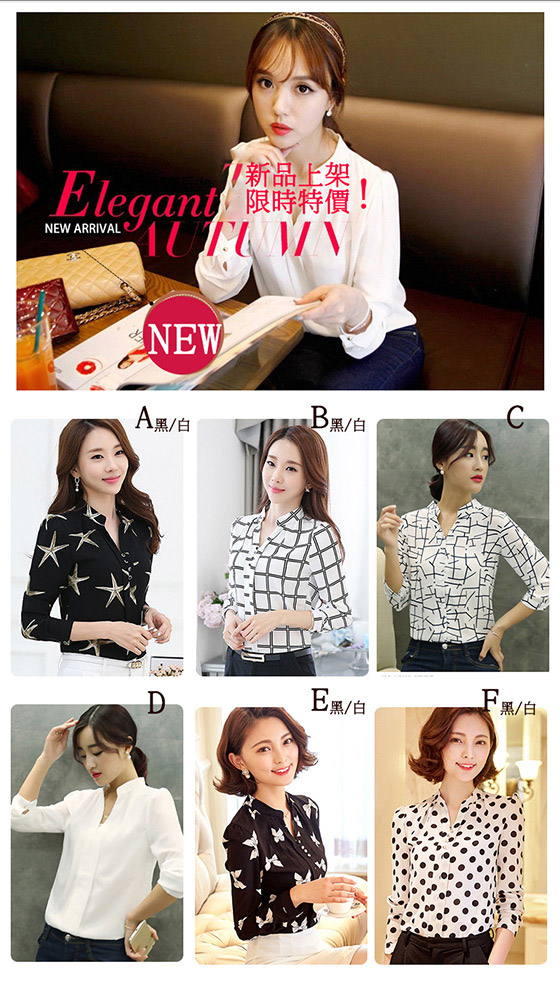 部落客都在推薦~~韓風6款時尚設計雪紡襯衫上衣"