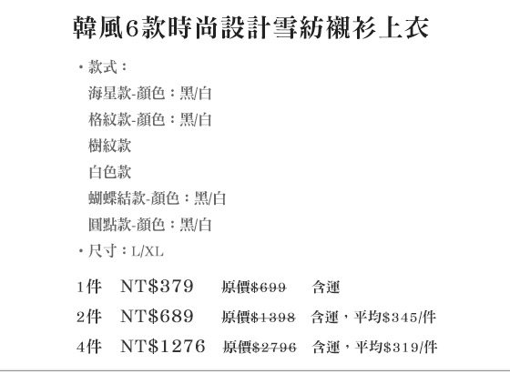 .....韓風6款時尚設計雪紡襯衫上衣"哪裡買最便宜.心得文.試用文.分享文