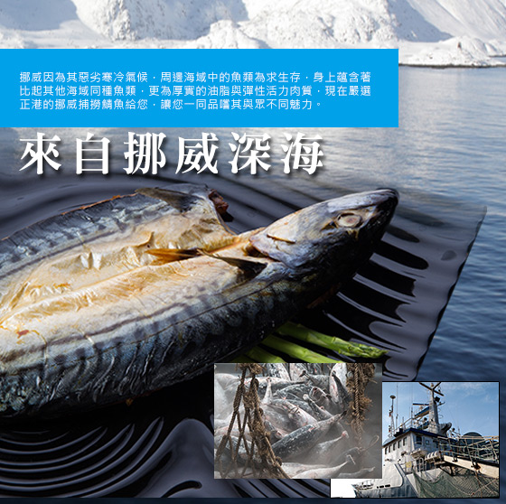 挪威因為其惡劣寒冷氣候,周邊海域中的魚類為求生存,身上蘊含著比起其他海域同種魚類,更為厚實的油脂與彈性活力肉質,現在嚴選正港的挪威捕撈鯖魚給您,讓您一同品嚐其與眾不同魅力。