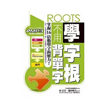 除了讓富有邏輯的字根記憶法加速單字背誦的速度之外,隨書附贈的中英文全收錄MP3,更能利用聲音的力量強化單字在你腦中記憶的深度及遠度,除了可以利用MP3矯正自己的發音,更能讓複習不受時間空間的限制,真正做到隨時隨地學英語!